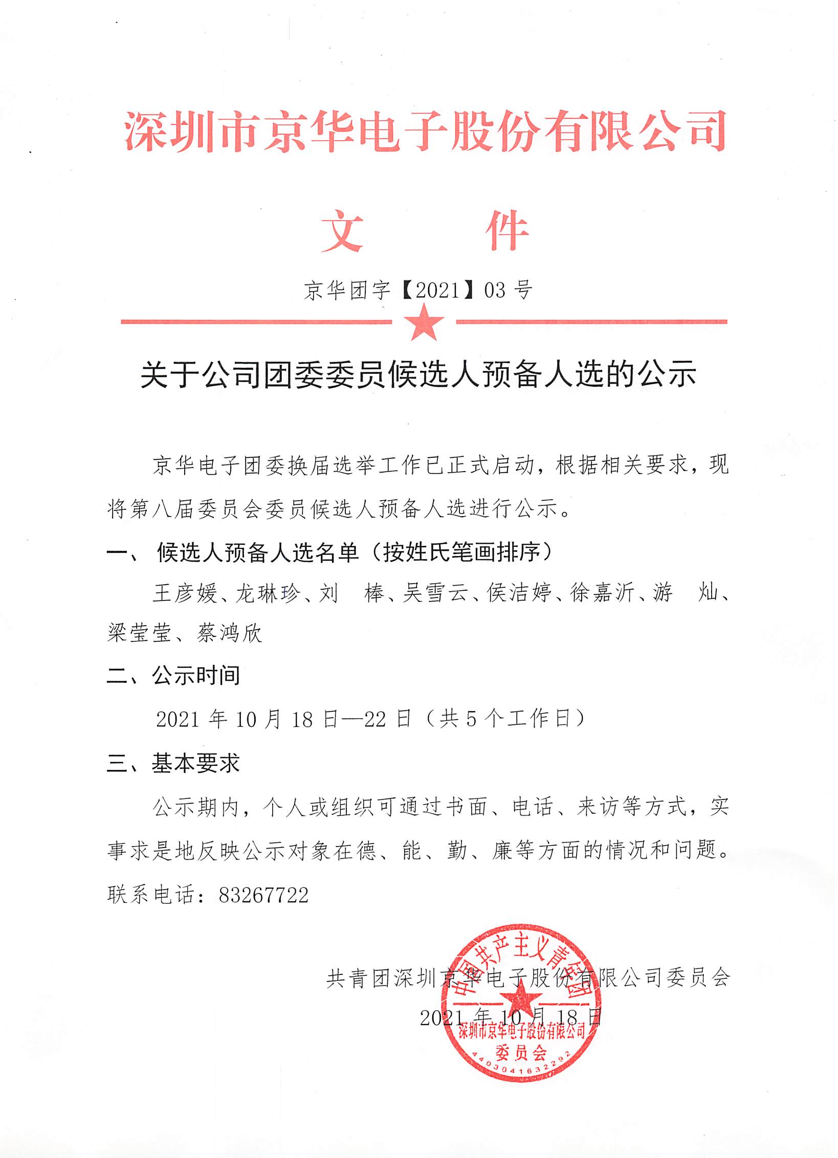 京華公司工會第十二屆委員會選舉結果的公示報告