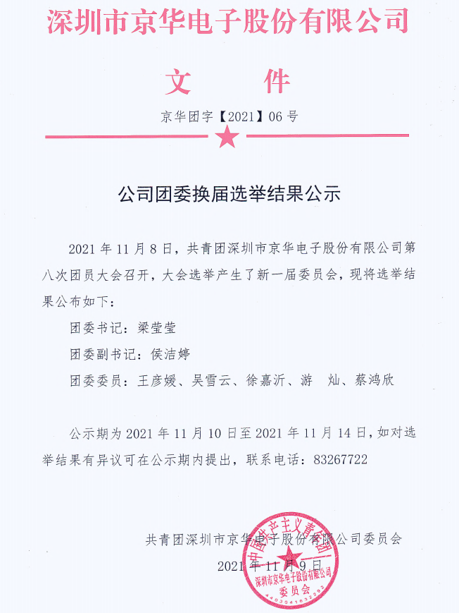 公司團委換屆選舉結果公示