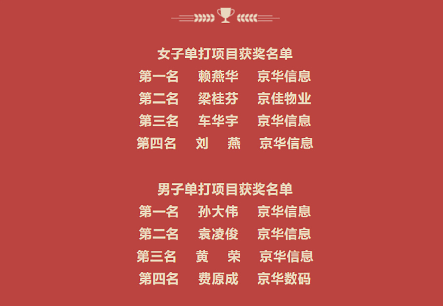 京華電子已連續(xù)多年舉辦“京華杯”羽毛球比賽,比賽的舉辦不僅增強了員工的身體素質(zhì),而且以賽事促聯(lián)動,為大家搭建展示自我和相互交流的平臺,充分展現(xiàn)出京華員工積極向上、努力拼搏、不斷進取的精神風(fēng)貌。