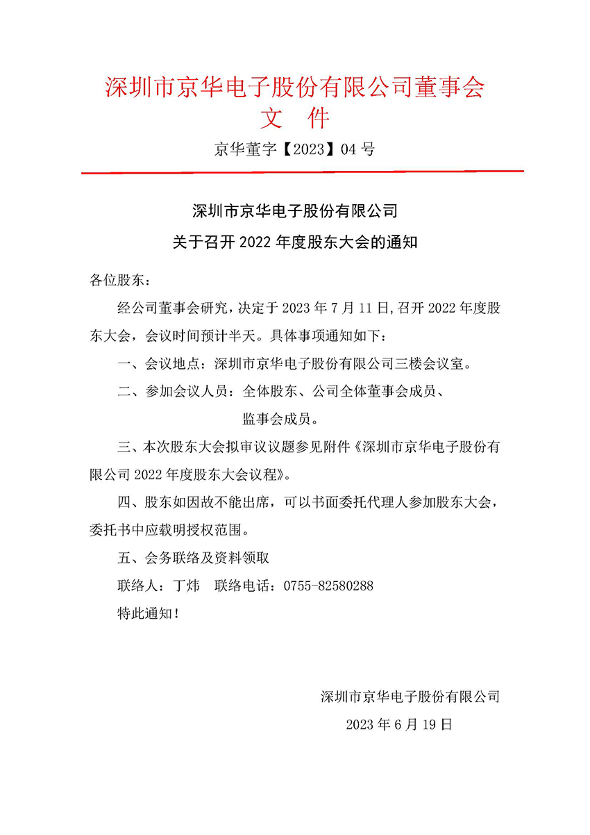 關于召開2022 年度股東大會的通知
